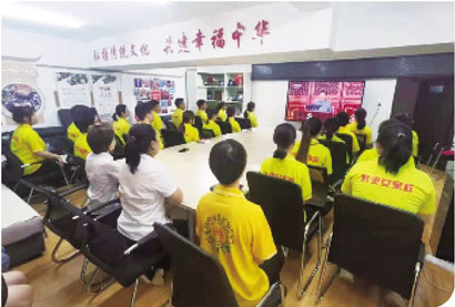 省政协委员、贵州黔灵女家政服务有限公司总经理郭毅组织员工集中收看庆祝中国共产党成立100周年大会直播。
