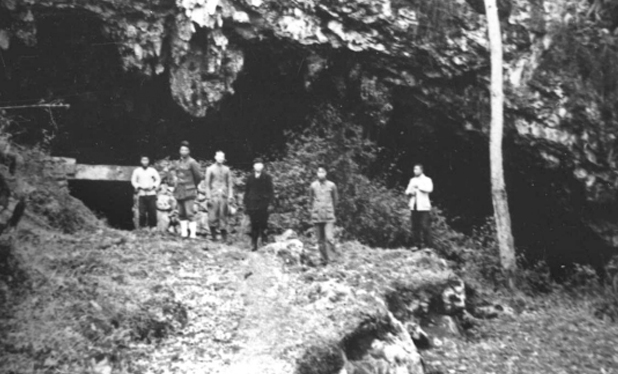 为了打发时光,贾兰坡一行人每日在盘县的街头巷尾悠闲漫步。贾兰坡清晰地记得,盘县县城的南边,远远望去,山峦之上隐约可见一座庙宇。行走不久,前面便是一座横亘的大山;翻过山岭,耳边响起了潺潺的流水声,一条河流蜿蜒流淌;继续前行,又一座山峰耸立在前,颇有几分“山重水复疑无路,柳暗花明又一村”的意境。他们沿着小河前行,直至来到了一处当地人称之为水洞的洞穴,河水流入其中。为了探究洞穴的地质结构,贾兰坡一行人用地质锤轻轻敲击洞穴口石壁的表面。卞美年还勇敢地率先进入洞穴探索,几位县保警大队的工作人员紧随其后,既是为了确保卞美年的安全,也是防止他逃跑而无法交差。