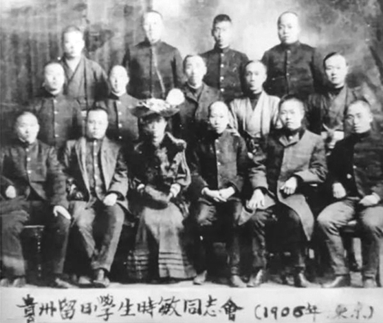 1906年,在日时敏同志会与清末革命志士秋瑾(前排左三)合影
