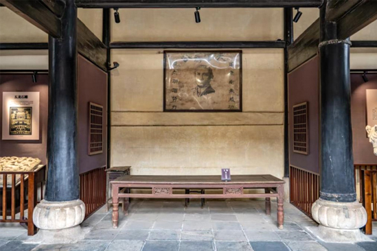 武汉抱冰堂,张之洞像与其亲撰的“登临不觉米欧遥”的对联