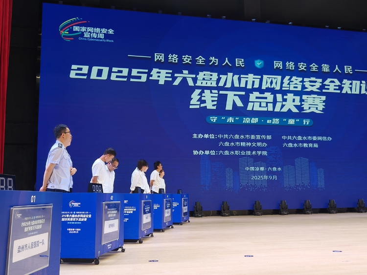 9月16日下午,2025年国家网络安全宣传周六盘水市网络安全知识竞赛线下总决赛在六盘水职院举行,此举系2025年国家网络安全宣传周期间,由中共六盘水市委宣传部、中共六盘水市委网信办、六盘水市精神文明办、六盘水市教育局主办,六盘水职业技术学院协办的主题为“网络安全为人民,网络安全靠人民”活动。