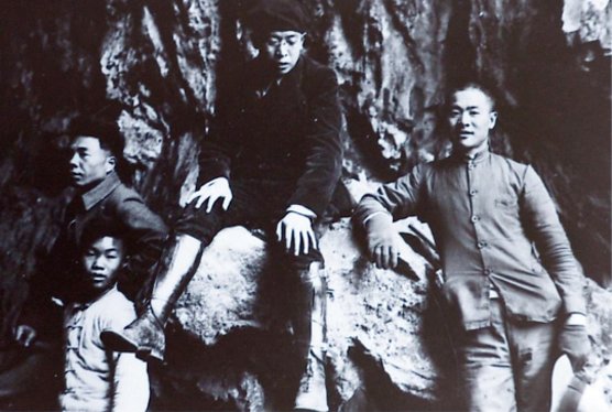 为了打发时光,贾兰坡一行人每日在盘县的街头巷尾悠闲漫步。贾兰坡清晰地记得,盘县县城的南边,远远望去,山峦之上隐约可见一座庙宇。行走不久,前面便是一座横亘的大山;翻过山岭,耳边响起了潺潺的流水声,一条河流蜿蜒流淌;继续前行,又一座山峰耸立在前,颇有几分“山重水复疑无路,柳暗花明又一村”的意境。他们沿着小河前行,直至来到了一处当地人称之为水洞的洞穴,河水流入其中。为了探究洞穴的地质结构,贾兰坡一行人用地质锤轻轻敲击洞穴口石壁的表面。卞美年还勇敢地率先进入洞穴探索,几位县保警大队的工作人员紧随其后,既是为了确保卞美年的安全,也是防止他逃跑而无法交差。