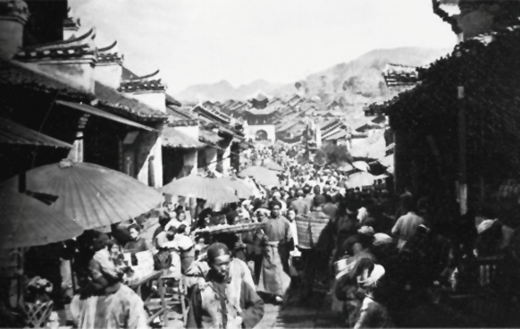 尽管当时的盘县县城规模尚小,却店铺林立、人流熙攘,展现出一派繁荣景象。军人、马队与佩戴着头帕的苗族民众交织穿行,构成了一幅生动的画面。盘县车站虽未完全竣工,却已引来众多民众驻足围观停靠在车站的汽车。恰逢春节前的赶集之日,北门城楼与钟鼓楼更是被络绎不绝的人群所包围,热闹非凡,一条河流穿城而过,河畔有几位妇女正忙着洗衣,构成了一幅充满生活气息的画面。一位老者,手持一根精巧的烟杆,长度超过一米,兼具抽烟与拐杖的双重功能。烟杆内部被巧妙地掏空,内置烟斗,浑然一体。老者神态自若,缓缓坐于地上,从容不迫地从布鞋的缝隙中掏出件小巧的物件,用以引燃烟丝。街上有妇女在卖葛根,这些葛根浸泡在木盆的清水中,显得格外新鲜。她将葛根用一把特制的弯刀细心地削成薄片,每片仅以一枚铜币出售。但是若你提出用两枚铜币购买两片,她会坚决地拒绝你,坚持一片一铜币的交易原则:付一枚铜币,即可取走一片;若想再得,则需再付一枚。这些葛根片不仅具有清热解毒的功效,而且越嚼越觉甘甜,深得贾兰坡一行的喜爱。当地人吃的黄色水饺,原以为是在汤中添入一种黄色配料所致。而事实上,水饺的黄色并非源自配料本身,而是由于在制作面皮的过程中加入了鸡蛋所致。