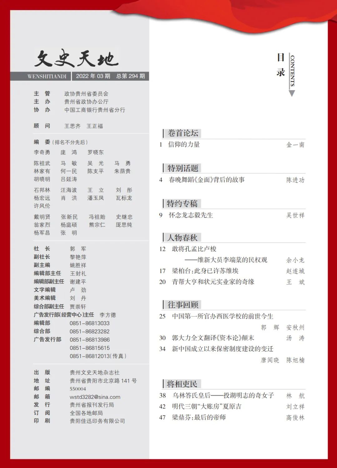 《文史天地》2022年第3期目录