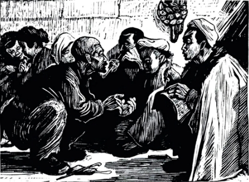 谢觉哉的这一设想很快就得到落实。1940年底,中央调中国女子大学(以下简称“女大”)高级班四五十人到陕甘宁边区选举训练班学习。主要学习的内容为新民主主义政权建设的理论、政策,指示以及边区选训条例、各级参议会组织条例等。1941年4月13日,女大选训工作团便由边区政府派赴绥德、清涧、安定、吴堡等县,各区乡选训班已开始上课,约于5月底结束。根据女大选训工作团的学员回忆,米脂的选举工作是“县的宣传搞得最好,所有文教单位都动员起来了,满街满巷贴满了红红绿绿的标语,教师和学生化妆上街宣传,县剧团配合编剧,上街下乡演出”。而在清涧,她们在与群众接触的过程中,通过不断地宣传政权选举的意义,启发了群众当家作主的觉悟。无论是在开会时,还是在集市、田间、炕头,她们都会利用写标语、画漫画、教唱歌等不同方式,反复宣传选举的意义。比如当时挂的标语:“水有源来树有根,政府主人是人民;伙计办事为主人,做好做坏要检查。”唱的选举小调:“民主政治要实行,选举为了老百姓。咱们选举什么人?办事又好又公平,还不耍私情。”选举漫画则更为生动形象,比如当时定边县在宣传选举法的时候所作的挂画《三种人没有选举权》。群众会自发讨论:“戴礼帽的是汉奸,上脚镣的是犯人,光脚片的是傻子(智力障碍者),这三种人没有选训权。”女大选训队的学生向民众反复宣传选举的意义、选什么人及选举方法,做到了不厌其烦、深入到户。