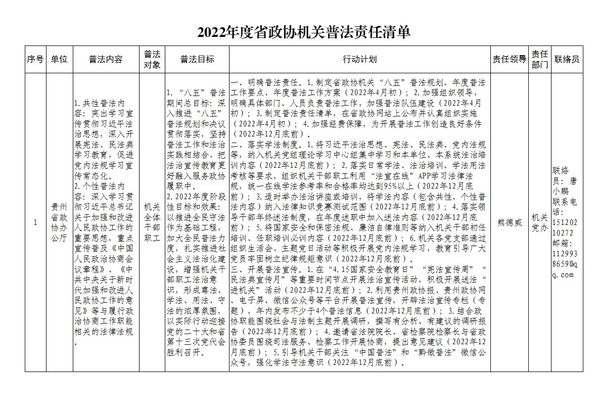 2022年度省政协机关普法责任清单